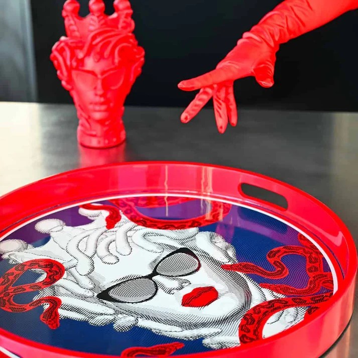 Coşkulu ve ikonik Sagrada Familia koleksiyonundan La Vipera yuvarlak tepsi.