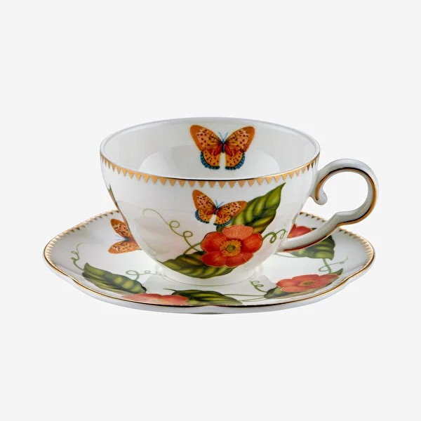 Enerjik ve sıcak tonlarıyla dikkat çeken Chiara Alessi Laura turuncu çiçek desenli porselen kahve fincanı, klasik sunumlara modern bir yorum getiriyor. Doğadan esinlenen kelebek ve yaprak detayları, ince işçiliğiyle öne çıkıyor.