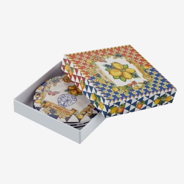Kırmızı, limon ve geometrik desenli