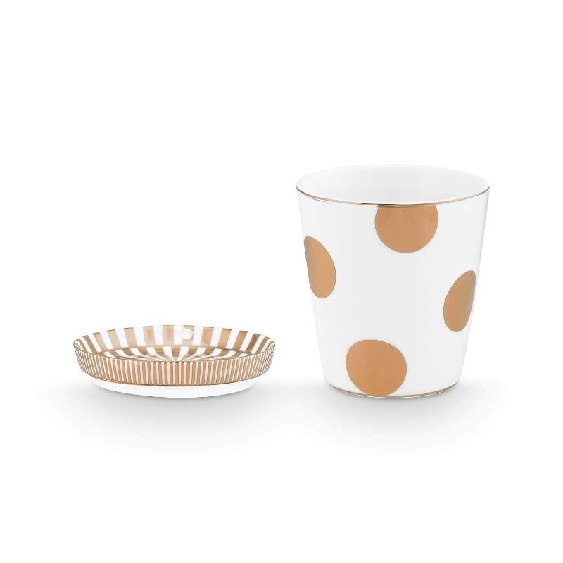 Doğadan ilham alan desenleri ve zarif yapısı ile hayatınıza farklılık katan Pip Studio Dot Delight beyaz gold detaylı porselen latte bardağı kendinizi çok özel hissedeceksiniz Lüks tasarımlı ürünlerle hem kendinizi hem misafirlerinizi şımartın. 230 ml kulpsuz kupa ve hem kapak hem altlık olarak kullanıma uygun olan porselen minik tabaktan oluşan set çay saatlerinizi en keyifli hale getiriyor.Hayatınıza ufak ama şık dokunuşlar yapmak, sofralarınızda mükemmel uyumu yakalamak istiyorsanız mutlaka Pip Studio koleksiyonlarına göz atmalısınız.