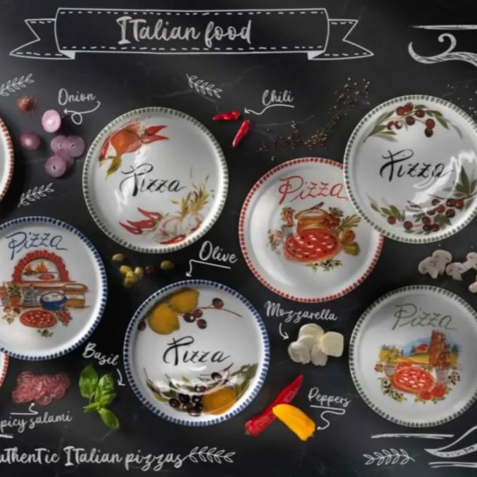 Yuvarlak formu ile pizza başta olmak üzere birçok farklı sunum için kullanılabilir. Aynı zamanda dekoratif bir duvar tabağı olarak da tercih edilebilir.